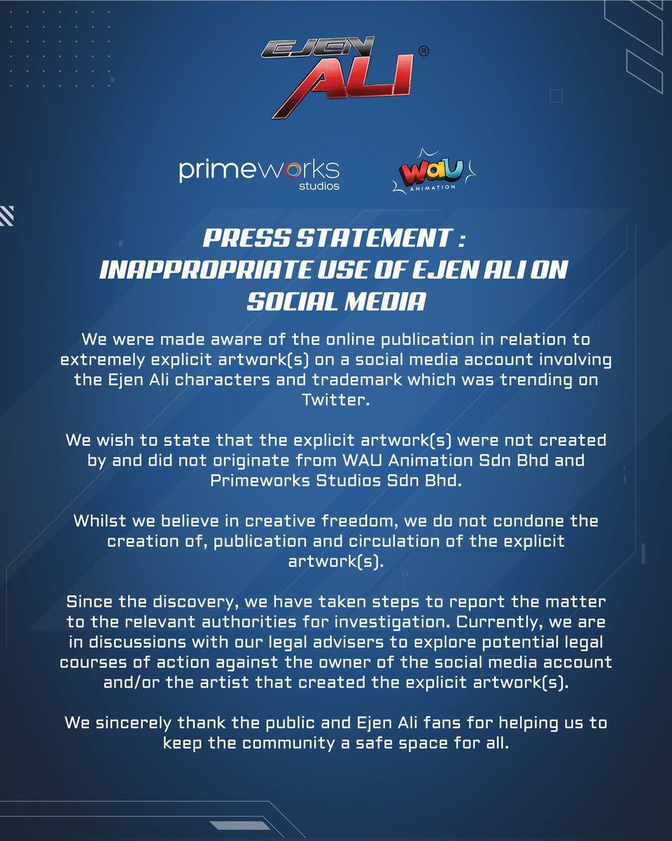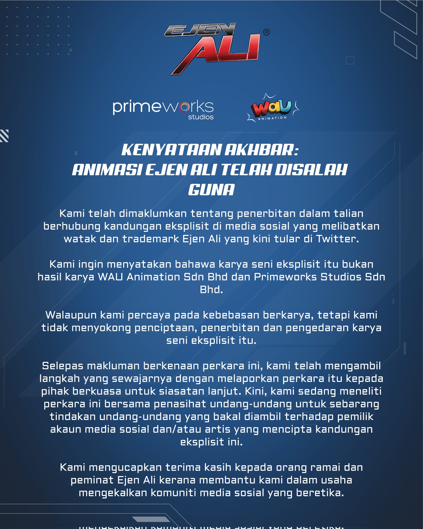 Is a malaysia Sendirian Berhad. 16K views 91 likes. The developer of Ejen Ali to remind people to bakarsemangatbukanapiThe public service announcement was created.